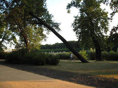Árvore super inclinada no parque do palácio de Charlottenburg, Berlim.
