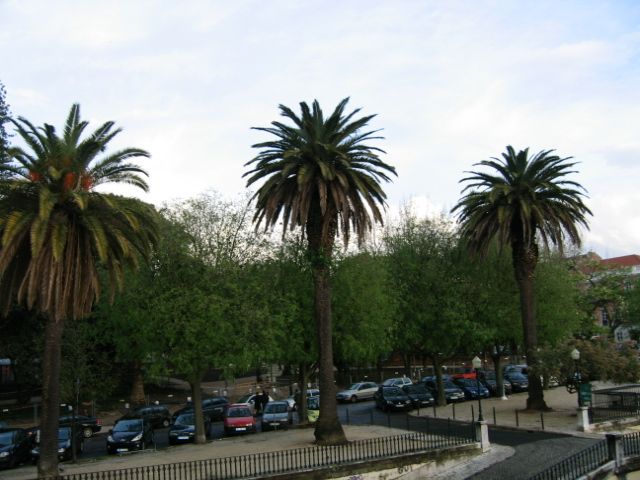 A palmeira do meio, na orla poente da praça do Príncipe Real, parecia querer reflorescer, como aqui demos nota, após a intervenção a que foi sujeita para a tentarem salvar in extremis. Para efeitos de comparação republicamos uma das fotos dessa altura em que no topo da palmeira uma nova palmeira despontava:
