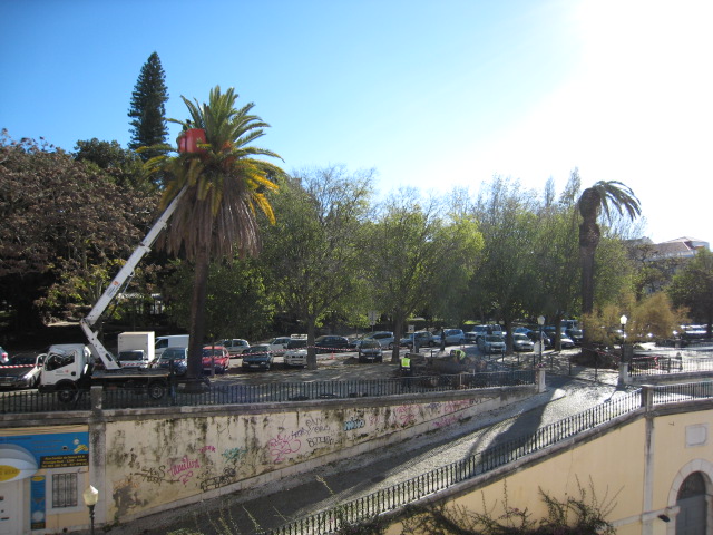Felizmente o ramo caiu para dentro do canteiro não causando danos pessoais, mas foi pura sorte porque se a ruptura se tivesse dado horas mais cedo há sempre crianças que gostam de trepar pelos ramos destas imponentes árvores.
